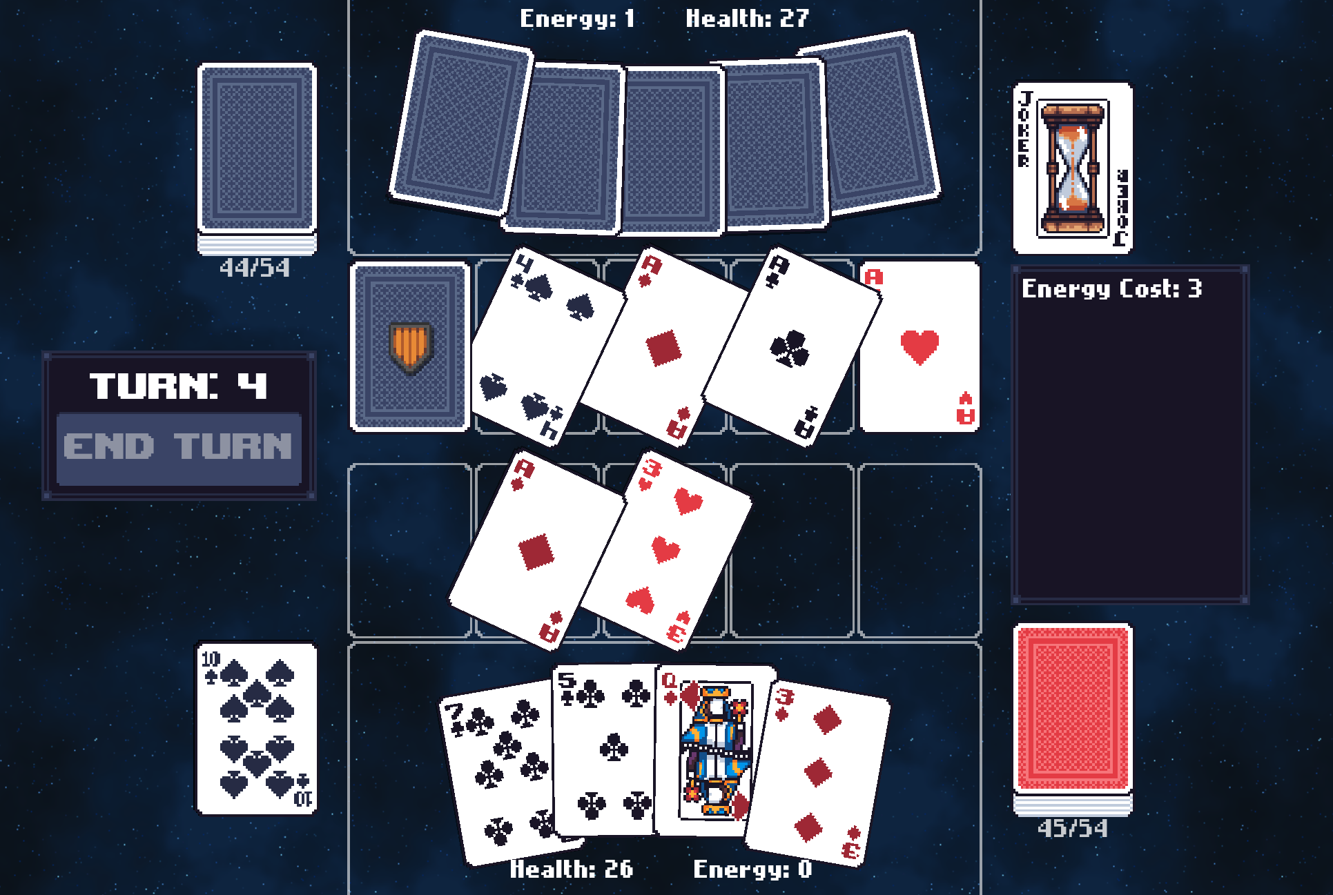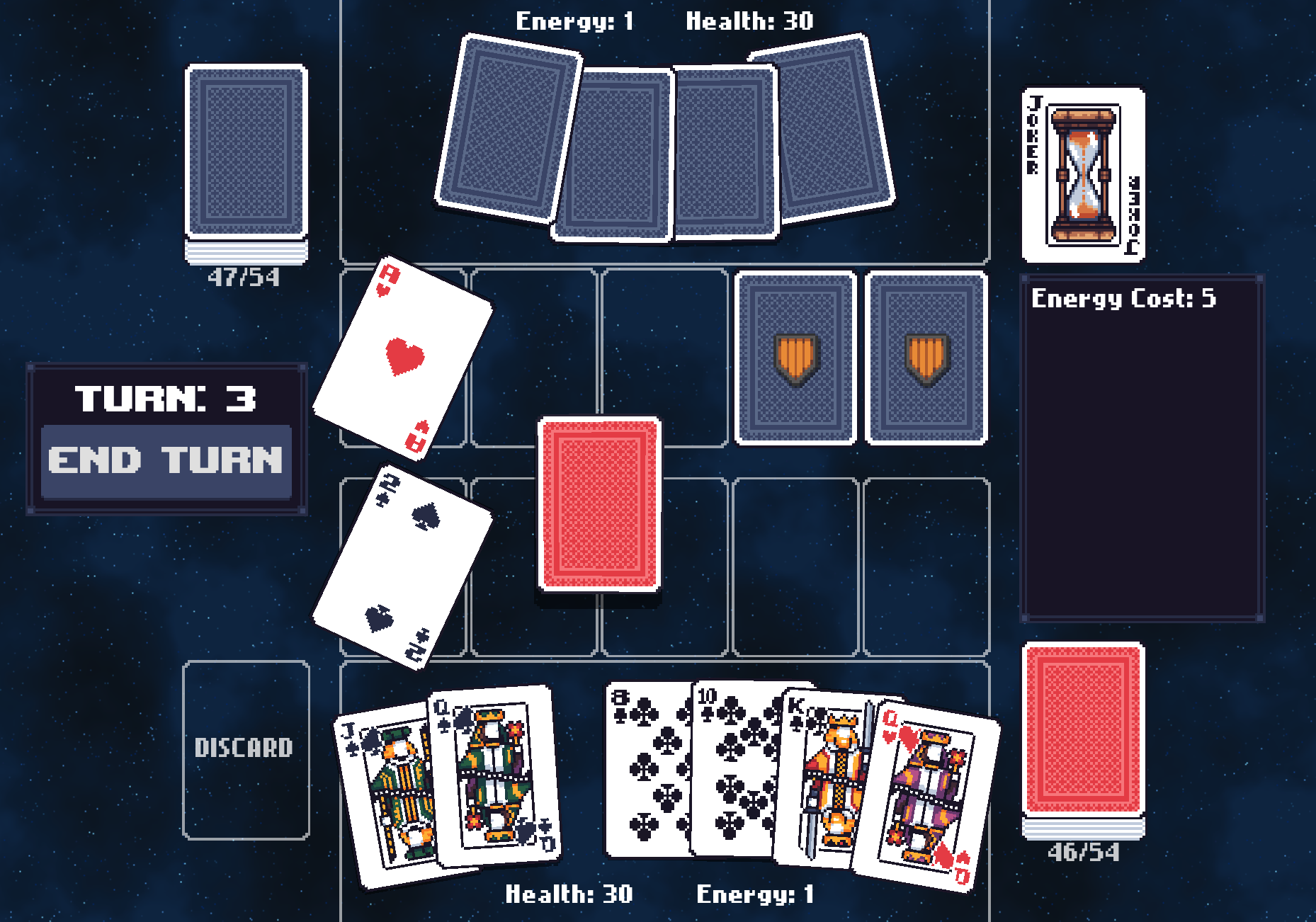 Riposte is a digital card battler where you and your opponent try to defeat each other using a "standard" deck of cards!